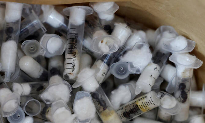 The 5,000 ants found with the Belgian teenagers were stored in 2,244 test tubes, each carefully packed with cotton wool to allow ventilation and long-term survival.