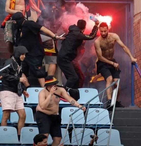 The conflict nearly took a deadly turn when members of Sundowns’ Yellow Nation supporters pinned Esperance ultras against the top-tier railings. Thankfully, stadium security intervened in time to prevent any fatalities.