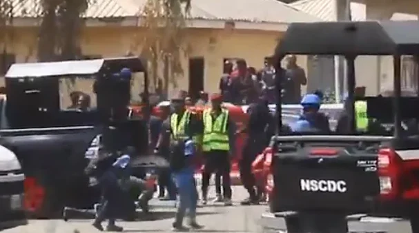 The video showed several other NSCDC officers and bystanders immediately rushing to the scene, together lifting the van to rescue the trapped victim into a waiting ambulance.