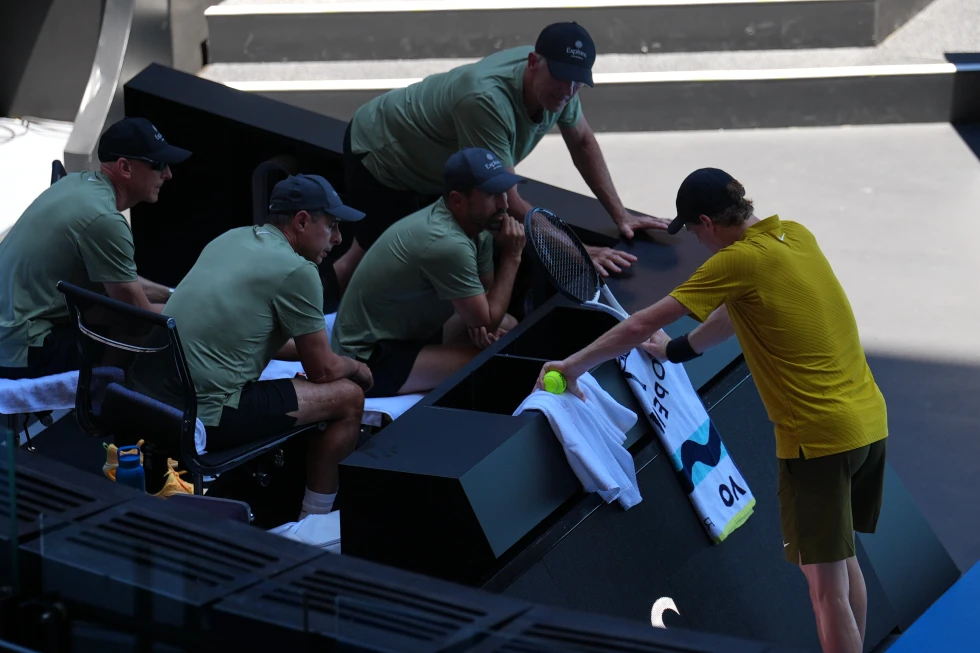 Jannik Sinner struggled badly in extreme heat at Rod Laver Arena. The defending champion was trailing and dealing with muscle cramps.