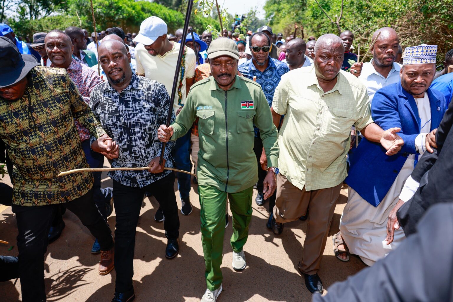 Kalonzo was accompanied by Makueni Governor Mutula Kilonzo Junior and several Wiper officials. They were received warmly under a mango tree where Mama Ida sat, surrounded by family members and Azimio supporters.