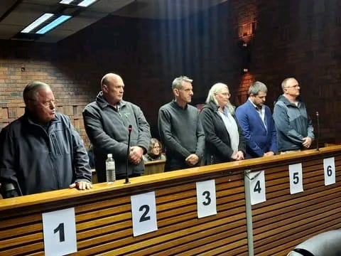 The accused include John Hume (83), former Platinum Rhino founder, along with Clive Melville (63), Izak Du Toit (50), Elizabeth van Niekerk (58), Mattheus Poggenpoel (37), and Johannes Hennop (52).