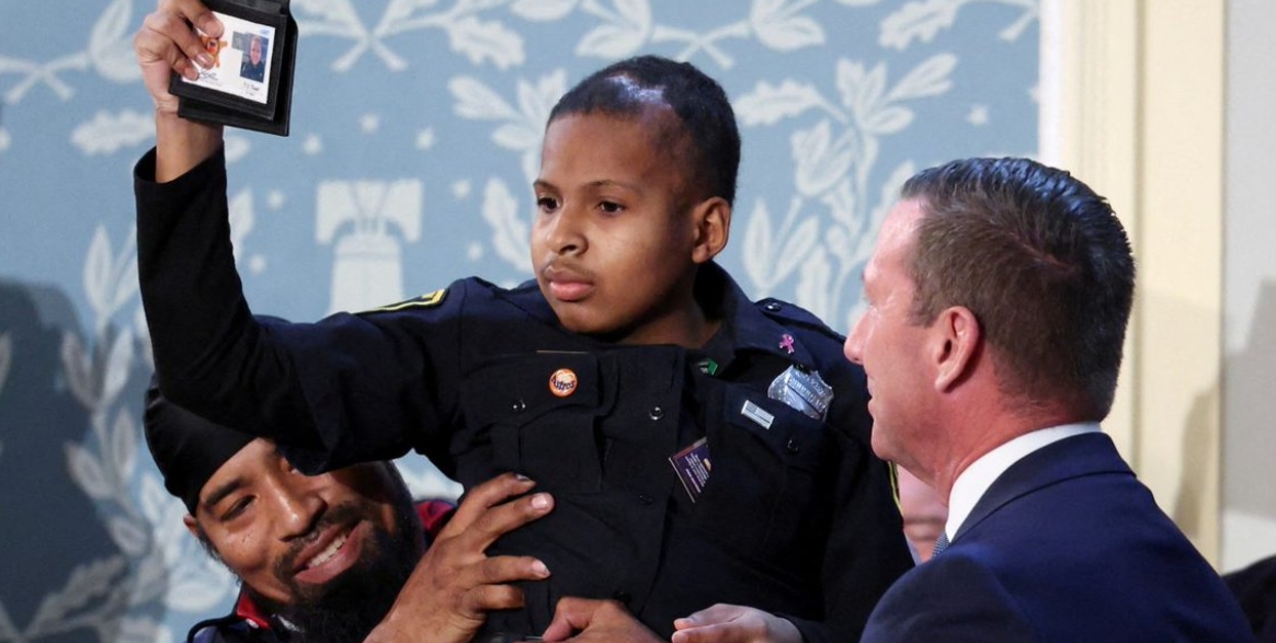 During his address to a joint session of Congress, former President Donald Trump took a moment to recognize DJ Daniel, a 13-year-old brain cancer survivor, for his resilience and dedication to law enforcement.